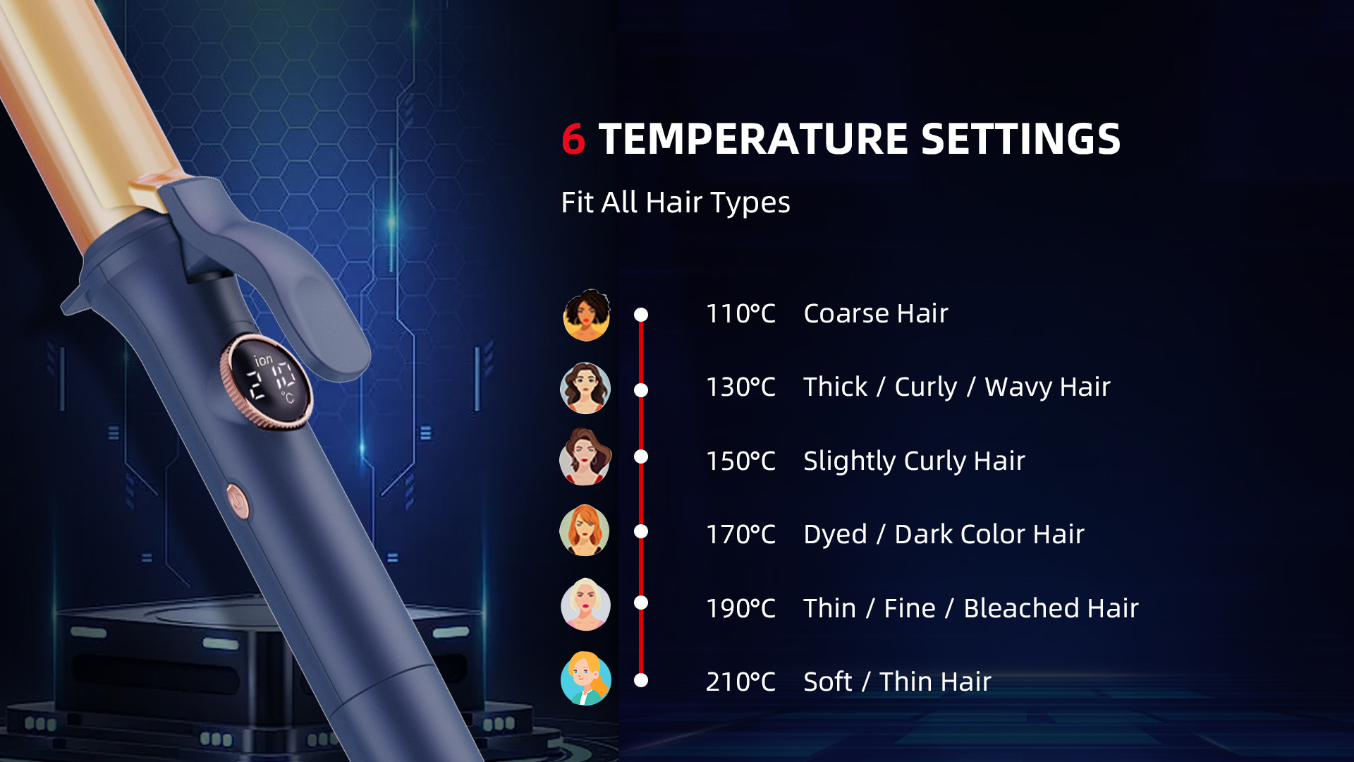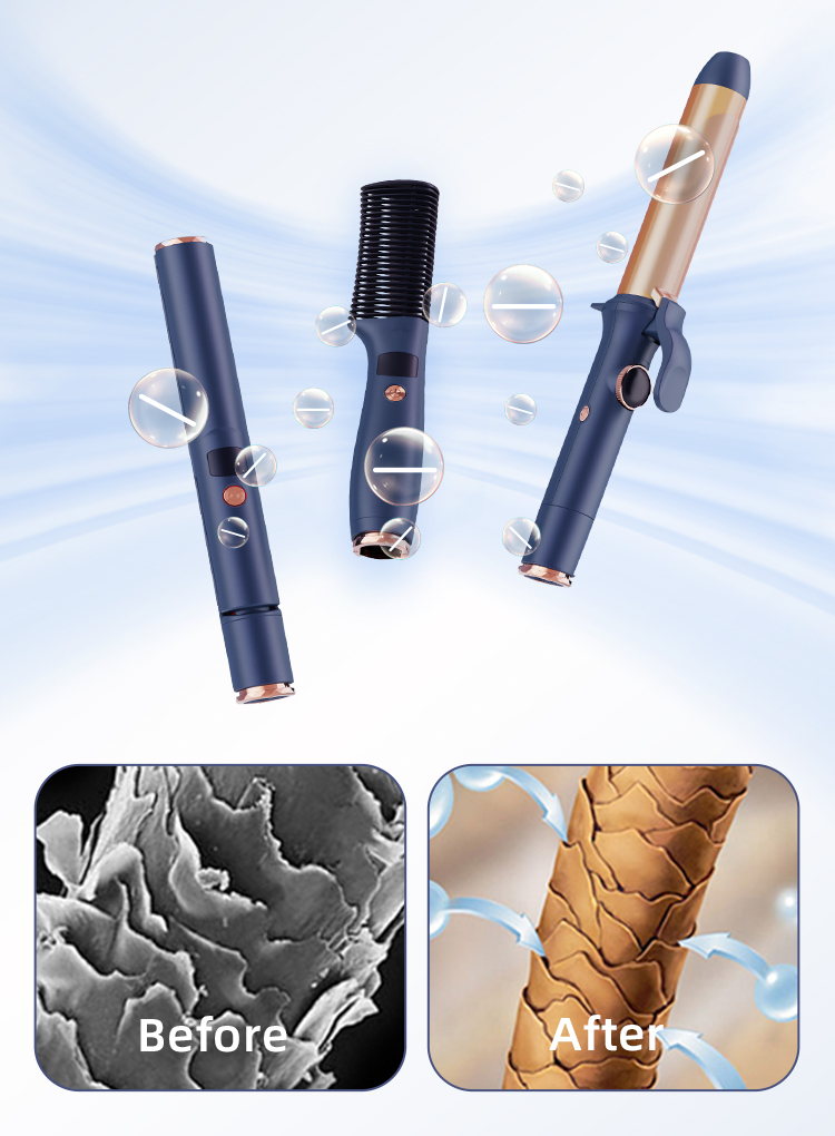This 3 in 1 hair styling set includes a 25-mm hair straightener, a 32-mm curling iron and a hair straightener brush. With the detachable power cord, a single power cord can control three devices, which saves a lot of space. With this set of styling tools, you can achieve various hair designs.